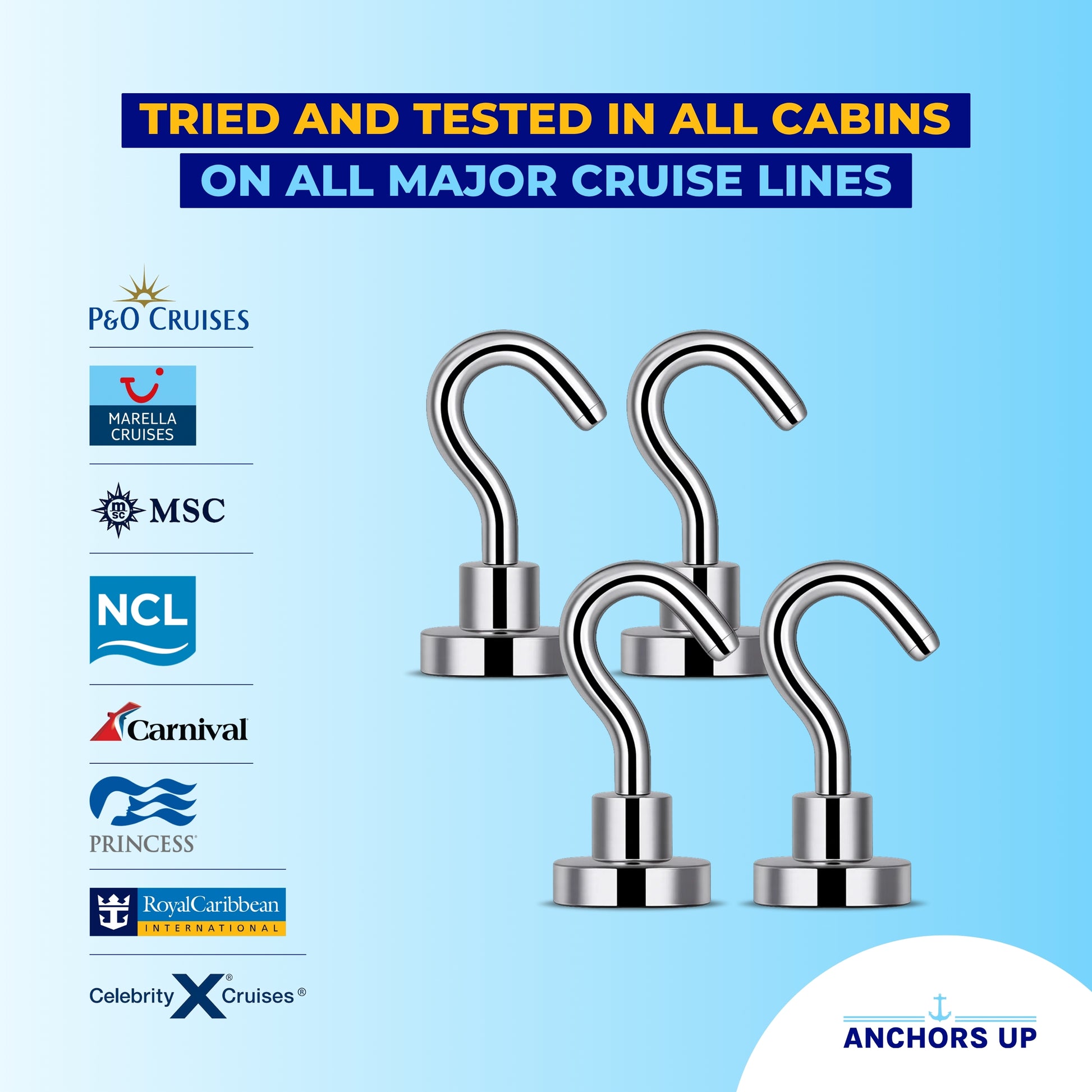 - STRONG - Our hooks feature strong magnets that securely adhere to any metal surface, such as cabin walls, doors, or ceilings. With a weight-bearing capacity of 10kg (22lbs), these hooks ensure your belongs stay safely in place, even during the roughest of seas.