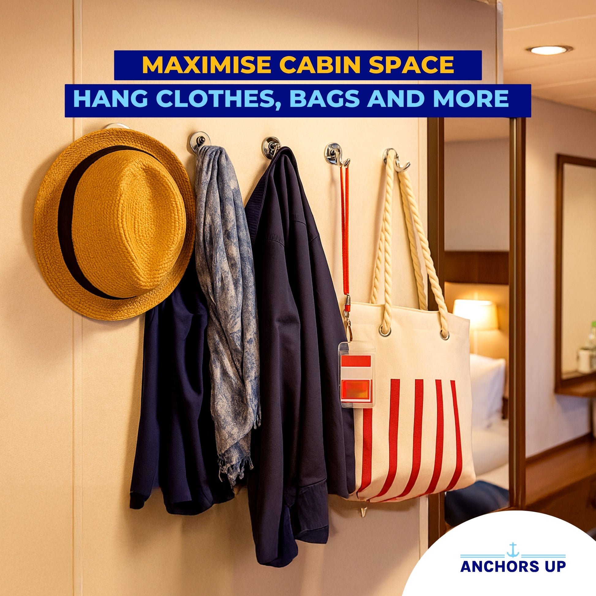 Don't let the limited space on a cruise ship cramp your style. These must have magnetic hooks are designed to maximise your cabin. By utilising ceiling and wall space you can create a clutter-free cabin with ease. Our hooks are most commonly used for the following: